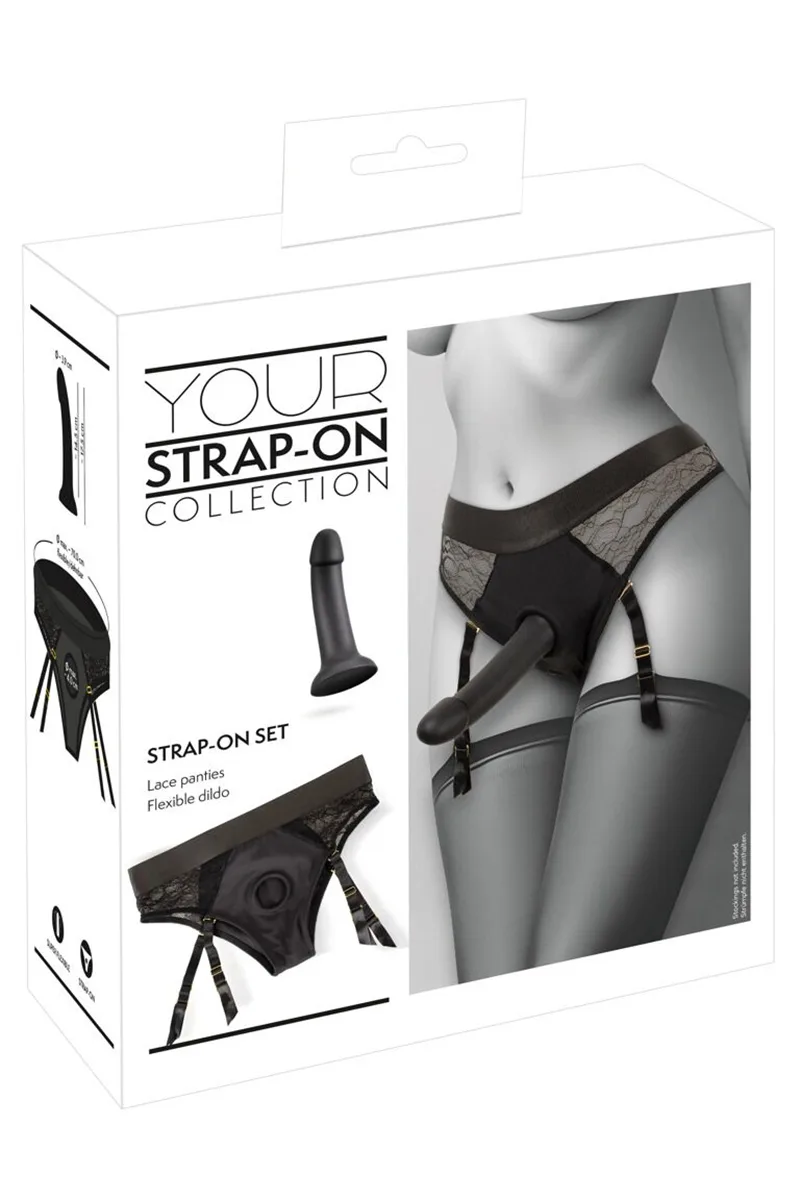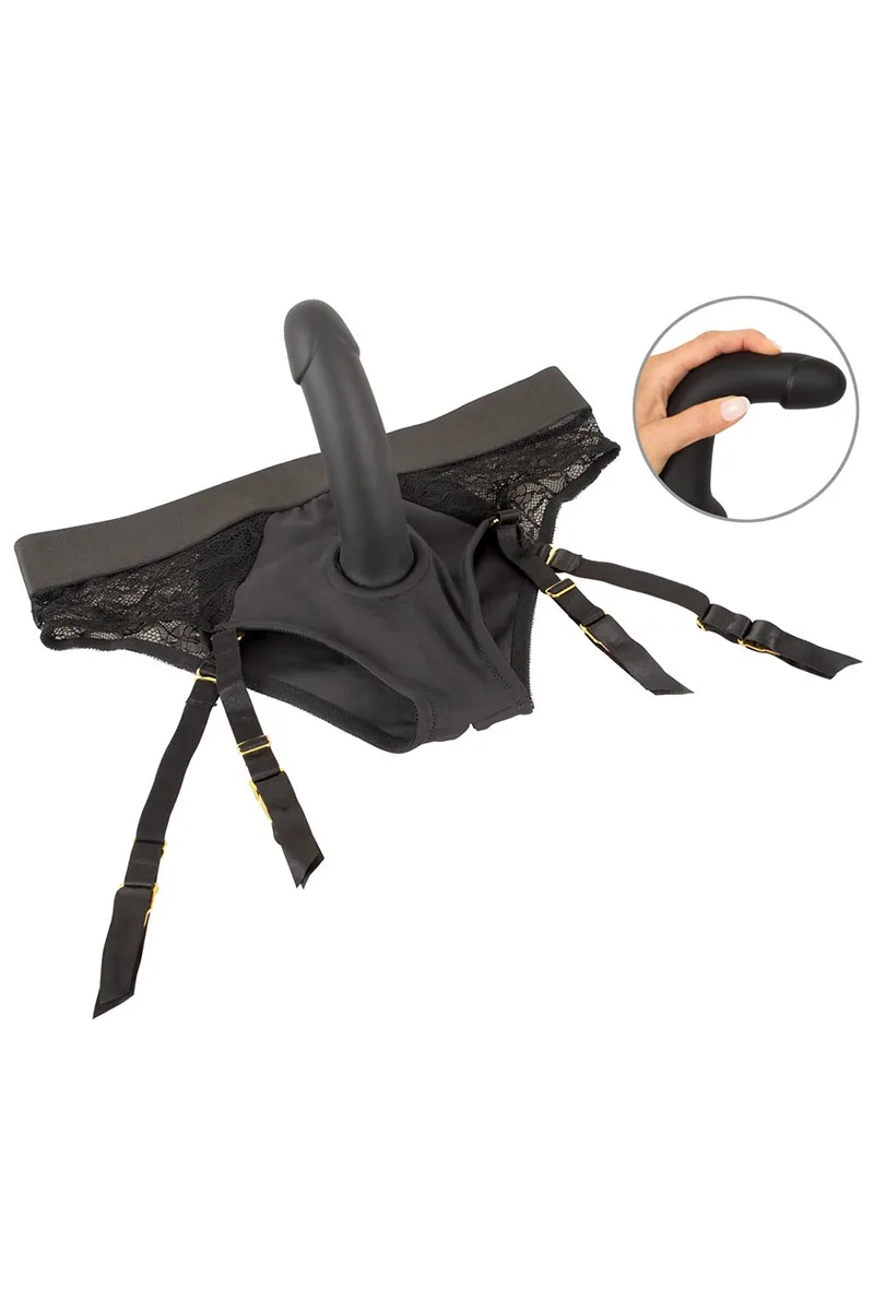 A la fois lingerie et sextoy, la culotte gode ceinture de la collection « Your Strap-on » by You2Toys est composée d’une culotte en dentelle et microfibre avec jarretelles réglables et entièrement amovibles. Elle dispose d’un anneau de maintien stretch discret permettant d’insérer facilement le gode à ventouse fourni ou tout autre godemiché/vibromasseur à ventouse d’un diamètre maxi de 4 cm.